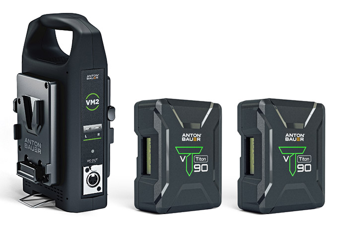 This Titon kit includes 2x Titon 90VM batteries and 1x VM4 V-Mount charger.