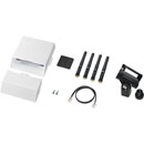 This dual handheld/bodypack system includes a single ATW-R1440 4-channel; receiver, 1x ATW-T1401 bodypack transmitter, 1x ATW-1402 handheld transmitter, ATW-RU14 unit holder, holder cover, 2x wood screws, 4x antenna, 1x blade tip for AC adapter, AC adapter, rack mount adapter (short), rack mount adapter (long), 5x fixing screws, 1x 30cm connecting cable, 4x rubber feet, and 1x AT8456a microphone holders.