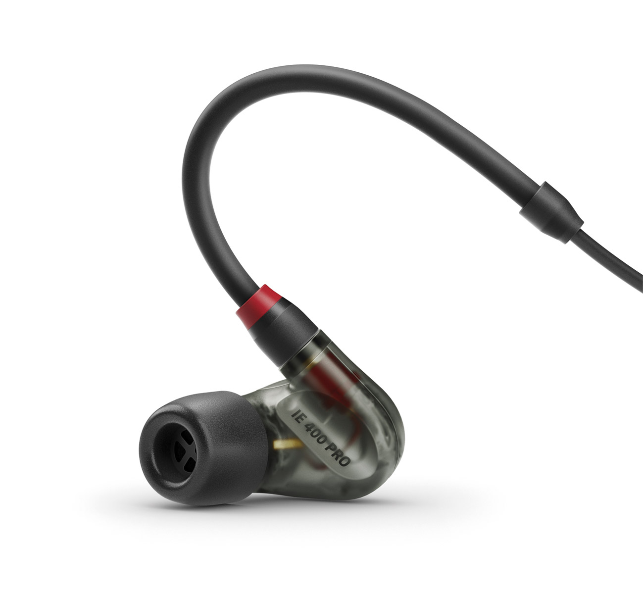 Like IE 100 Pro, IE 400 Pro earphones have a dynamic transducer, however they an extended frequency response of 6Hz to 19kHz, and a sound pressure level of 123dB. IE 400 Pro are available in clear or smoky black variants. A detachable 1.3m cable terminates with 3.5mm stereo jack connector, and a 6.3mm jack adapter is supplied.