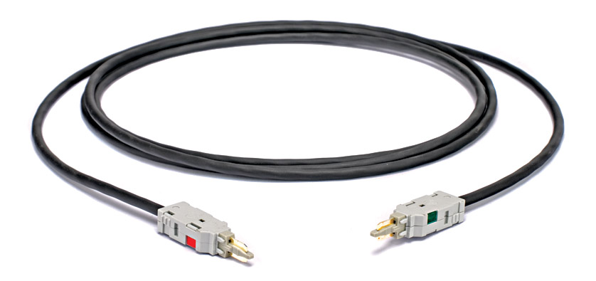 For temporary path jumpering between Krone modules, a 2m double ended test cord allows circuits to be accessed on disconnection modules and patched over to other circuits. Two versions are available – LL: listen/listen and LB: listen/break. Usage will depend upon the signal paths concerned and the function of the patching. The plugs are marked with green dots (connected side) and red dots (unconnected side) to aid usage. All cords are manufactured from polyurethane jacketed twin screened cable, type HST-R-M.