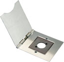 Stainless steel hinged flap plates, with sprung hinged-flap. Mounting holes to fit standard BS electrical flush boxes BS1363 or BS4662.