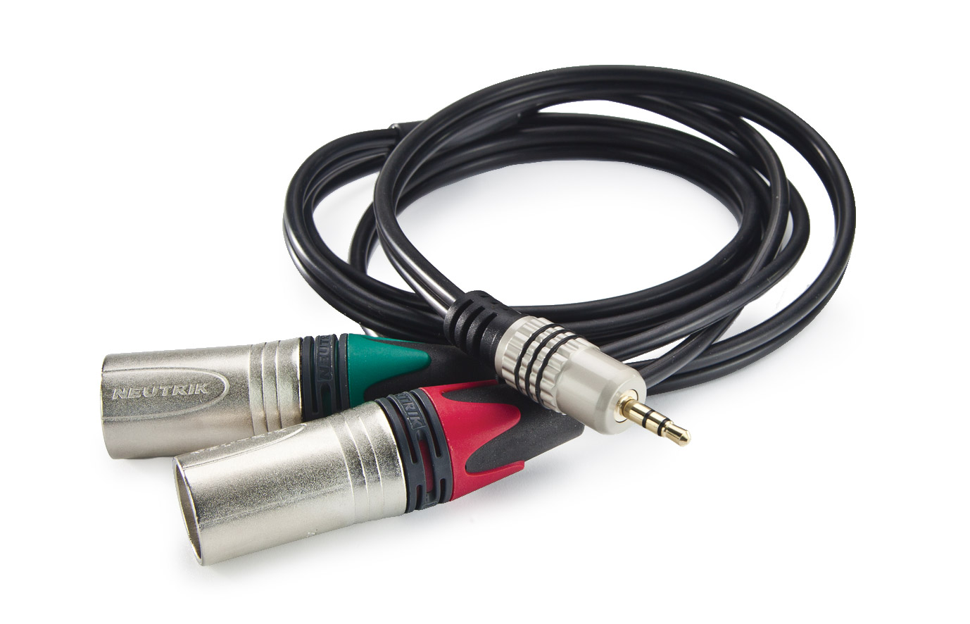 Prewired cables, ready for use. Wired unbalanced stereo at the 3.5mm 3-pole moulded jack. Moulded "Y" split in cable. Coloured glands identify Red for A leg or left leg and Green for B leg or right leg.
