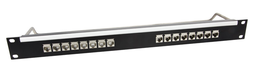 A range of panels supplied fully populated with feed-through (also known as double-sided or back-to-back) screened RJ45 CAT6 sockets enabling system patching and easy connection of portable or external equipment. A printable designation-strip with snap on cover and a lacing bar are fitted as standard.
