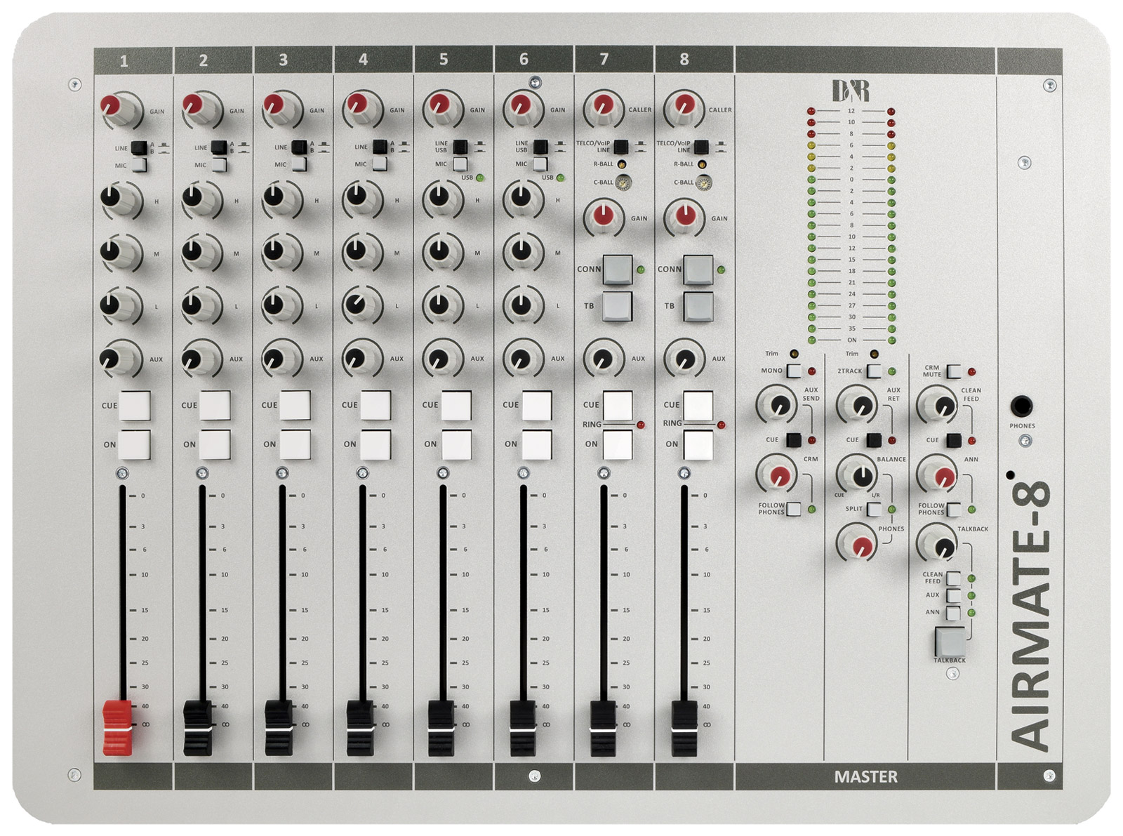 D&R AIRMATE-8-USB BROADCAST MIXER 6x XLR mic in, 12x RCA stereo in, 2x USB I/O, 1x VOIP, 1x WPC Stock code: 95-8639