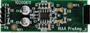 On the control surface, each channel has a channel fader, and switches to send the channel to the 'Cue' mix and main mix. 'On' switches on all channels are wired in series with the mechanical fader enabling selection of start either by fader or hard start via the On switch. Channels one to six have rotary controls for gain EQ and a the send to the auxiliary mix. Equalisation is three-band, with +/-12 dB shelving at 12kHz for high frequencies, +/-12dB at 1kHz 'bell' curve for mid-frequencies, and +/-12dB at 60 Hz for low frequencies. They also have push switches to select between the three inputs.