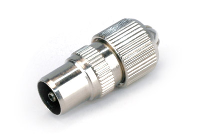 Used for antenna connections to TV’s and tuners. Plug has hollow centre pin with screw, also suitable for solder termination, plus compression braid clamp. Adapter has female contacts at both ends.