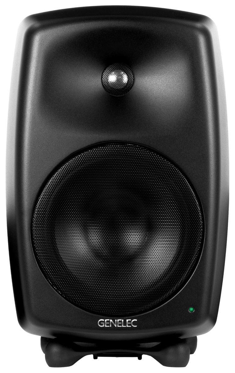 A bi-amplified, class D, two-way speaker suitable for a variety of applications where high-quality sound is needed in a compact space, from near-field and project studio monitoring to surround-sound, high-end installations and multimedia systems. It has magnetic shielding, an aluminium cabinet, active crossover and 2 x 50W amplifiers. Genelec's 'Intelligent Signal Sensing' circuitry switches the monitor to standby when no audio input is detected. The amplifier section has switches for treble tilt, bass roll-off and bass tilt and has a female XLR input. It can also be used as a pair in conjunction with a subwoofer (7050B recommended) as a 2.1 stereo format system or as a 5.1 surround system, including up to 5 x 8020D units in total.