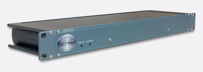 Glensound's Signature Series have internal power supplies as standard, in addition every unit, other than the PS1 power supply, has an external 12V DC input which may be used used as a primary power source, or for backup when connected to an optional Signature PS1 power station. The Signature case is in rack-mounting format, 1U high, and has extruded sides to which rack 'ears' are attached. These may be removed and fixed to the rear of the unit if desired. The extrusion has 'wings' at the side which may be used to mount the case to a flat surface.