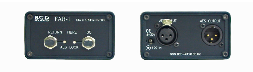 BCD FAB-1 AES-3 AUDIO TO ST-FIBRE INTERFACE Bi-directional AES/EBU, requires 2x fibres and DC power Stock code: 20-238