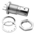 These are for front-of-panel fixing, using the supplied hex nut and lock washer on the front of the panel after the connector has been offered up from the rear, and are available with bayonet pins top/bottom or side/side. The bodies are precision machined, except the -01 and -02 types which are diecast.