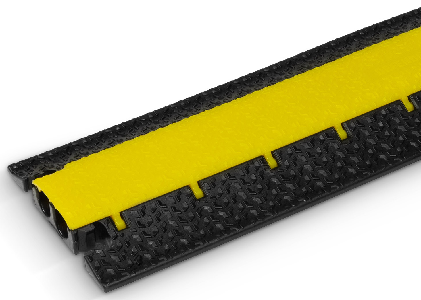 Defender Micro 2 cable protections has been designed for medium use in trade fairs, walkways, marketplaces, workshops, warehouses, events, and department stores. It features two small channels, both measuring 35 x 30mm. The cable crossover is rated to 2.0 tonnes per 20cm sq. Straight sections measure 1005 x 273mm and have a height of 45mm. A LUX version offers semi-transparent lid for use with light ropes for better ramp identification in dark areas.