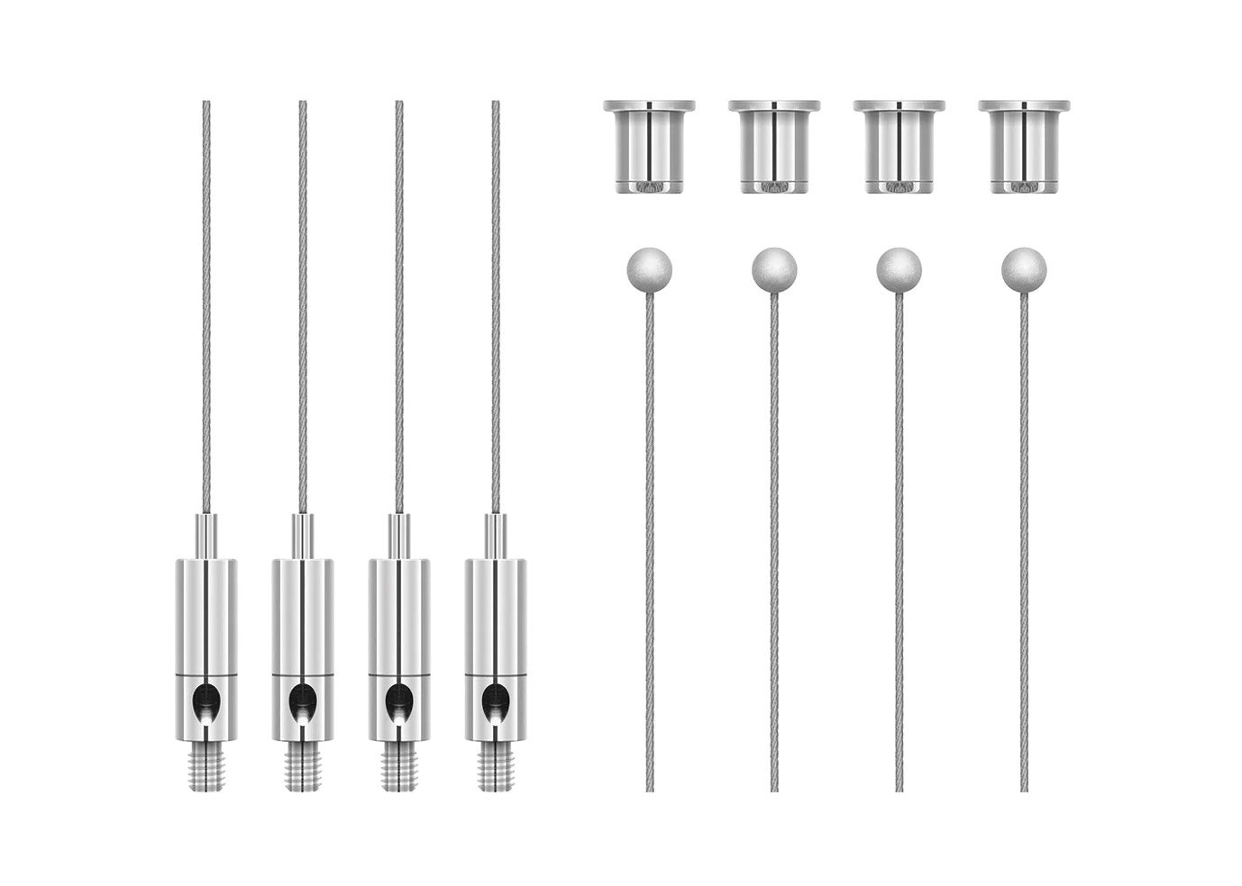 The kit allows the installer to suspend the TeamConnect Ceiling 2 by up to 5m from the ceiling. Kit includes: 4x ceiling installation threads, 4x 5m steel cables, 4x ceiling housing threads.