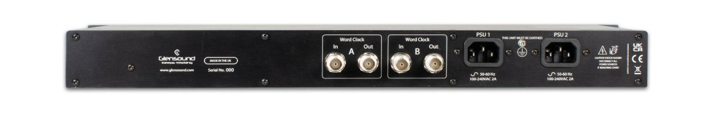 Separate word clock inputs and outputs are available for each Dante interface with BNC connectors positioned on the front facing panel. Redundant switch mode AC power connections are positioned on the rear facing panel in the form of IEC connections. The redundant power supplies operate on a load sharing basis whereby both power supplies are running together at a low level.