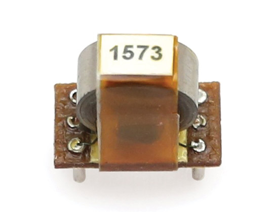 Suitable for drive and reception of a balanced line, with both source and receive impedances of either 75 or 110 ohms. Turns ratio: 1:1. Dimensions: 15(l) x 9(w) x 11(h above PCB)mm. Weight 2g.