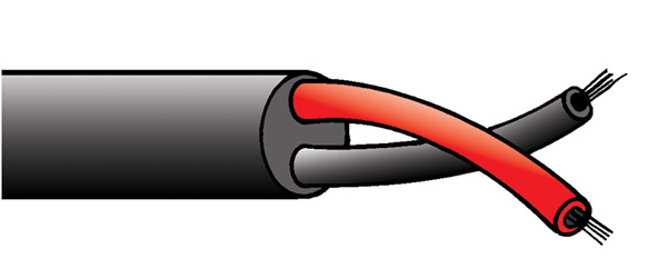General-purpose loudspeaker cable similar in construction to GPS, but with reduced insulation thickness and reduced overall jacket diameter, making this cable not only a little more flexible than GPS, but also more economical of space in installed applications. Cores are twisted, coloured red and black, and the cable is marked “Loudspeaker cable” to distinguish it clearly from mains cables, for safety reasons.