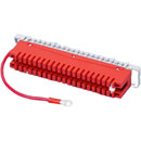 Allows bulk termination of earths or screens on a termination frame. Two versions are offered - red block with flying lead fitted with insulated eyelet, or black block with 2 metre unterminated lead.