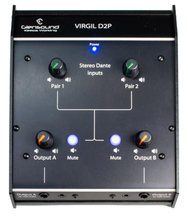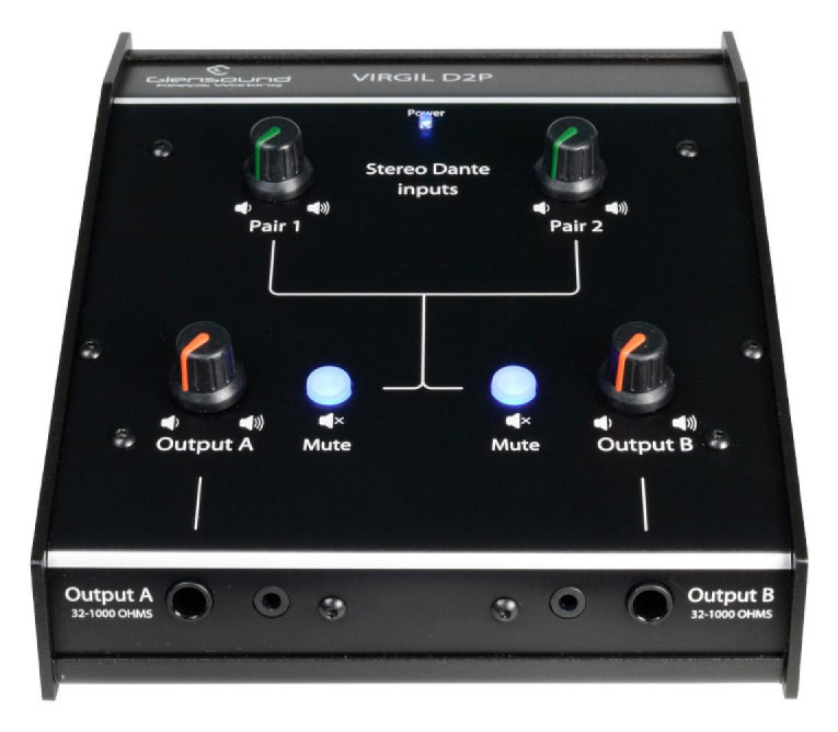 GLENSOUND VIRGIL 2DP HEADPHONE AMPLIFIER Desktop, dual Dante audio inputs, 6.35/3.5mm jack outputs Stock code: 95-9050