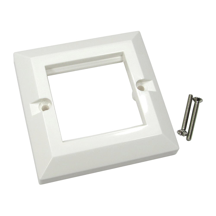 Faceplates are bevelled; back boxes are 32mm or 45mm deep, with various cable knock-outs for routing, both available in 1 or 2-gang variations. Brushed 1 or 2-gang faceplates are also available, for tidy routing of cables when no modules are required.