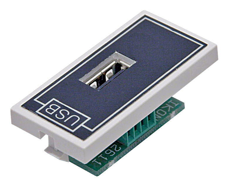 Front panel USB type A socket with internal screw terminations. Depth required: 15mm.