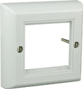 Raised metal mounting plates are a profiled, pressed, sheet-steel design, matching many manufacturers' ranges of connection plates. These are available in traditional 1-gang sizes, in brushed stainless steel finish. The aperture in the plate is edged with a white trim, which should be chosen to match the colour of the modules being used.