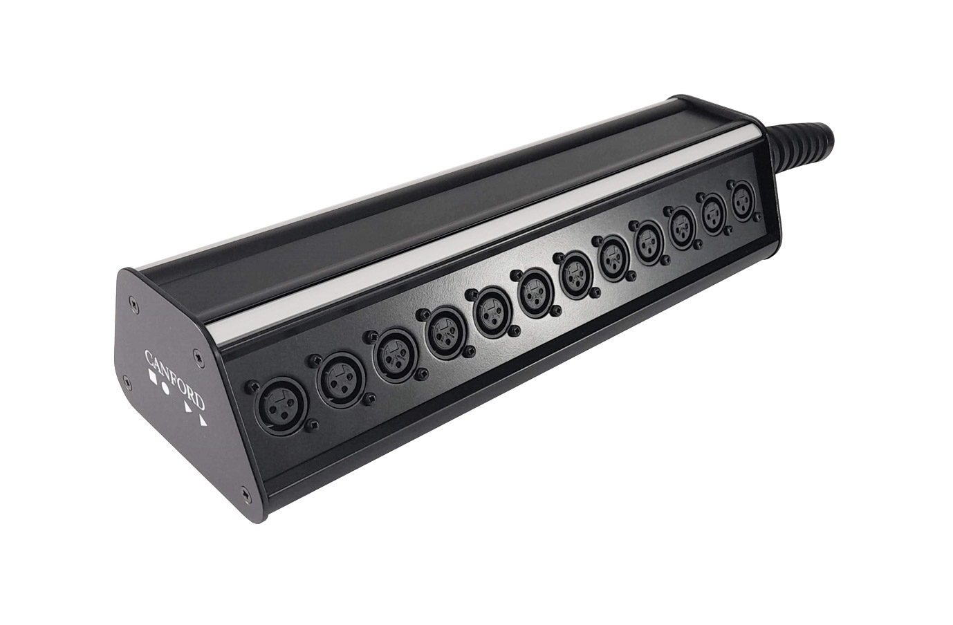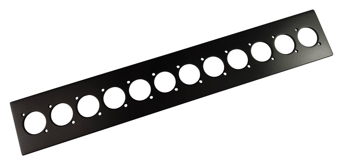 As well as the above assembled stage boxes, Canford offer a range of spares allowing customers to create stage boxes to their own specific requirements. This range includes top and bottom extrusions in all three lengths. Top extrusions come either with no identification or numbered 1-4, 1-8 or 1-12. Side plates are either blank or with four, eight or twelve D series ‘Universal’ cutouts and end plates again blank, or punched to accept a cable gland or a range of panel mount multipin connectors, allowing alternative connector configurations to be created.
