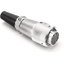 26 pin connectors, with 5 keyway orientation guides and 3 aperture bayonet locking ring on cable types. Matt nickel finish aluminium alloy shells. Inserts retained by 1.27mm hex socket head screw, suitable hex key available. Inter-mateable with other connectors to JIS C54JZ specification, also known as Sony ‘Q’ type connector. Maximum cable diameter 12.2mm.