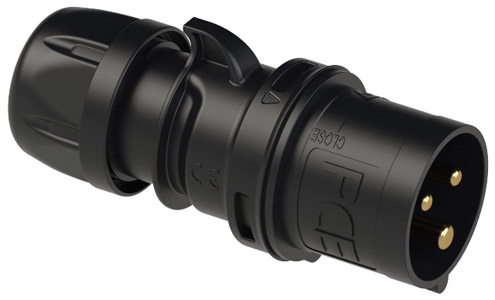 PCE 023-6X SPLASHPROOF 32A CABLE PLUG, Straight, IP44, black Black Stock code: 42-843