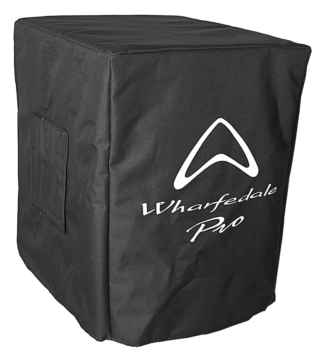 The wooden housing features a recessed carry handle plate on each side, 35mm internal top-hat pole mount on the upper surface, rubber feet to prevent slipping, and steel manufactured front grille. The front grille houses a blue illuminated Wharfedale logo to signify power on. The rear facing panel, which also acts as convection cooling outlet, houses a balanced 3-pin XLR input and output for both A and B channels, with a single rotary volume controller. A polarity switch allows 0/180 degree control, and a further rotary controller allows the user to control the low pass filter frequency from 80Hz to 200Hz. Power is by way of standard IEC AC input, with green LED signifying power on. Finally, a red LED signifies when the limiting circuit is active.