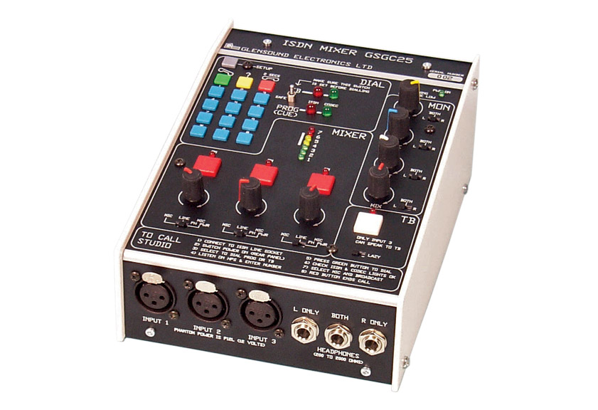 The GSGC5 audio section consists of a 3 mic + 1 line input mixer, with two headphone monitor outputs, each of which can set its own mix of desk output and cue return. This section can be used with conventional landlines. On the ISDN section, calls may be made utilising internal codecs via an approved integral terminal adapter. All audio inputs and outputs are via front panel mounted XLRs, with headphone jacks. ISDN connection, X.21 interface on ‘D’ connector, external DC input and power switching are on the rear.