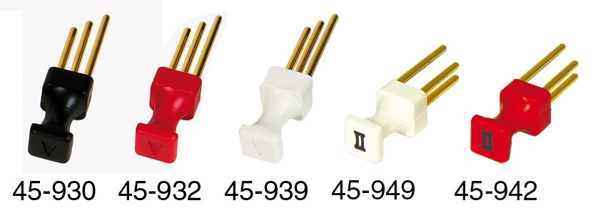 Routing is achieved by inserting a plug into the lower row (the connection is made by the long pins on this plug linking the front and rear contact wafers). Patching does not break any contacts, so a “source” on the top row is simply patched to the “destination” on the lower row, just like a conventional jackfield. Effectively, with a plug inserted, the panel acts like a “half-normalled” jackfield, which is the way virtually all jackfields are wired in use.