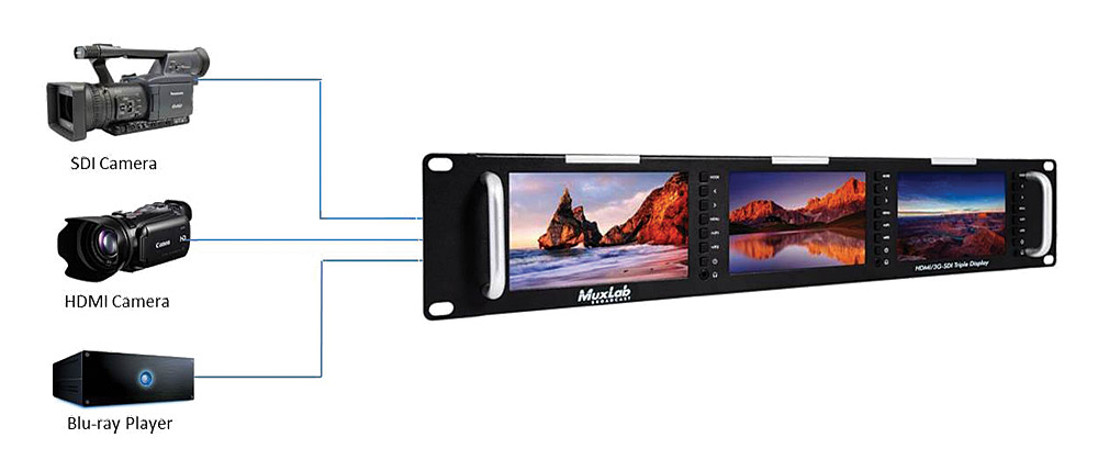 Rackmount displays or multi-displays are commonly used in both commercial and industrial industries, such as broadcast studios, film and AV studios, IT departments and data centres to give the engineer a visual indication of the output of one or multiple feeds.