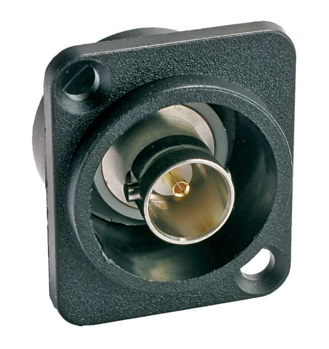 CANFORD D-SERIES BNC 12G UHD (double-sided) 75 ohm, M3 tapped mounting holes, black Black Stock code: 49-491