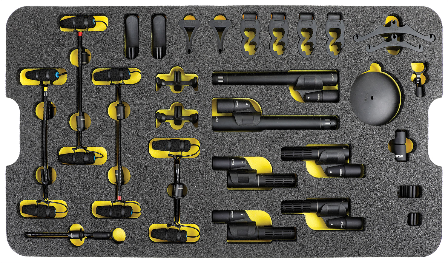 A selection of pre-defined kits from DPA that include microphone or microphones and accessories for particular uses, such as interview, presentation, live, studio, and location use. Some kits include a Peli hardcase with milled foam inserts to keep the microphones tidy, accessible, and quicker inventory tally.