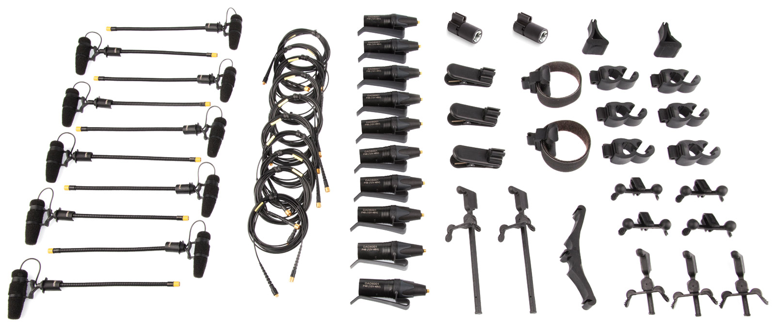DPA Classic Touring Kit is a complete set of microphones that have been 'optimised for classic acoustic instruments'. The kit is available with or without Peli case (models with '-C' suffix), and with either 4x or 10x microphones that can be used to close-mike most instruments, along with a variety of mounting clamps to suit those instruments.