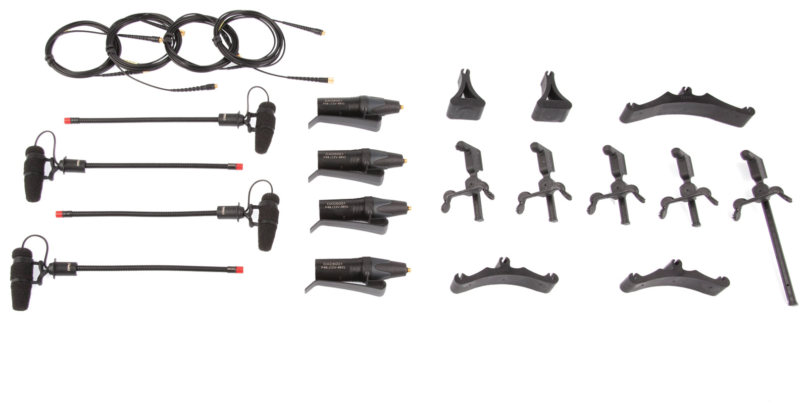 DPA Rock Touring Kit has been designed 'for live rock band performances'. The kit is available with or without Peli case (models with '-C' suffix), and with either 4x or 10x microphones that can be used to close-mike extremely loud instruments including drums, brass, and guitar cabs, along with a variety of mounting clamps to suit those instruments.