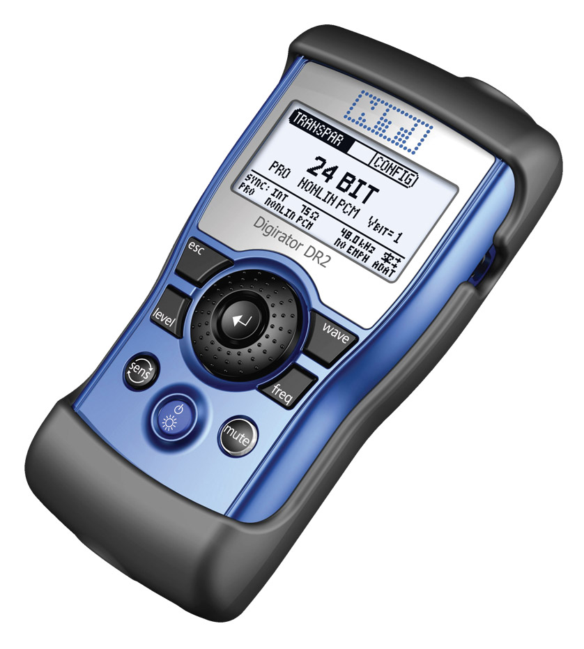 The DR2 tests whether a transmission channel is transparent for non linear PCM signals and indicates if Dolby E, Dolby Digital and/or DTS bit streams can pass. This test is also suitable for any digital audio recording device. The propagation delay between any DR2 digital audio output and the XLR sync input, which accepts AES3 signals, may be measured and displayed in seconds or video frames.