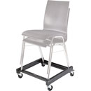 A durable and stable, steel manufactured transport cart for orchestra chairs including 13420 and 13430. The powder-coated low steel frame hosts four casters, two of them lockable to provide flexibility. Load capacity: 75kg. Dimensions: 600 x 550 x 160mm. Weight: 6.56kg.