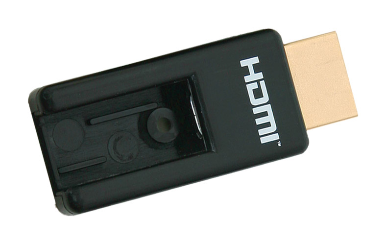 The cable diameter is only 3.4mm and comprises four optical fibres for the video and audio signals, six copper wires for HDMI control signalling and CEC functions and Kevlar reinforcement to give a pulling strength of 500N (50kg). The connectors, which contain the send and receive electronics, are a similar size to those in copper HDMI cables, with a cross section of 19.6mm x 11.2mm.