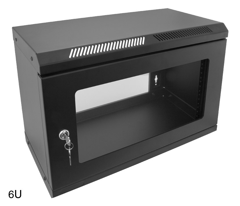This series of 19-inch, reduced-depth rack cabinets have been specifically designed to provide a cost-effective solution for a wide variety of applications where space is limited or where all items to be installed have relatively low depth requirements, such as patch panels and modems. With light weight, bolted construction for strength and rigidity, they are available in five heights and are supplied complete with a steel-framed, tinted, acrylic front door.