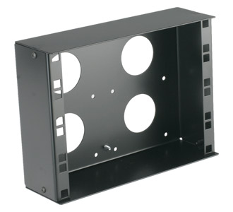 This range of boxes with integral rack-strips, punched in 1U increments, is suitable for wall mounting, fitting under workstations or virtually anywhere where connection panels or rack-mounting equipment needs to be located. They are constructed from 1.5mm steel in 2U, 3U, 4U, 6U, 8U, 12U and 20U heights and two depths in full-rack and half-rack widths.