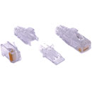 Cat6 FTP types are supplied with wire-management bars, together with a black strain-relief bush with ‘snagless’ latch-cover. The connector body has a double, wrap-over style, cable-clamp for optimum screen continuity. They are suitable for cables with overall diameters 5.90mm - 6.30mm. Suitable crimp tool is 55-3219.