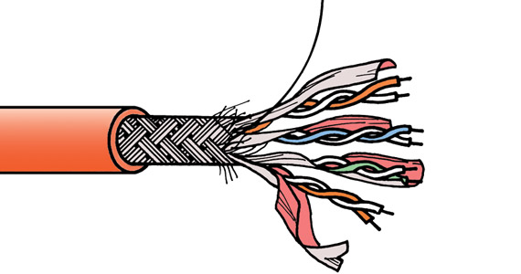 This S/FTP design has individual foil screens for all four pairs, plus an overall braid screen and is only available with a Low Fire Hazard ('LSOH') jacket.
