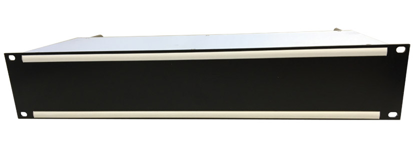 A designation strip is fitted on the front panel of 1U cases, two designation strips on 2U and 3U cases. All cases have a lacing bar fitted to the rear panel.