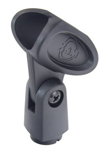 High quality, virtually unbreakable flexible plastic cradle, with friction tilt swivel, available in a range of four sizes to suit virtually all microphones. The cradle will accept both straight and tapered body microphones, including radiomics. Compatible microphone diameters are suggested in product descriptions. Standard 3/8" mounting thread.