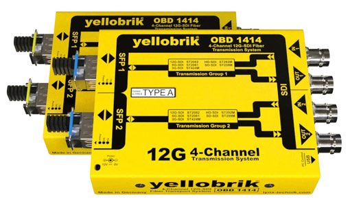 LYNX YELLOBRIK OBD 1414 FIBRE TRANSCEIVER 4-Channel, 12G/6G/3G/HD-SDI, Bi-Dir, 2x SM LC, 10km, pairLYNX YELLOBRIK OBD 1414 FIBRE TRANSCEIVER 4-Channel, 12G/6G/3G/HD-SDI, Bi-Dir, 2x SM LC, 10km, pair