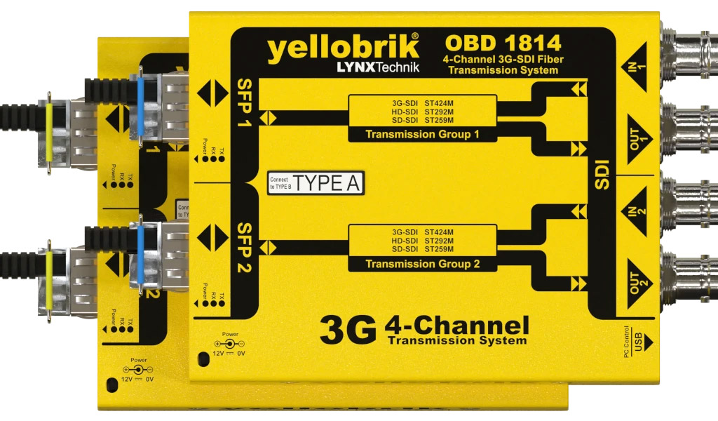 LYNX YELLOBRIK OBD 1814 FIBRE TRANSCEIVER 4-Channel, 3G/HD/SD-SDI, Bi-Dir, 2x SM LC, 10km, pairLYNX YELLOBRIK OBD 1814 FIBRE TRANSCEIVER 4-Channel, 3G/HD/SD-SDI, Bi-Dir, 2x SM LC, 10km, pair