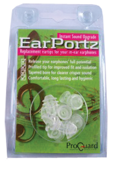 ProGuard Earportz eartips have a uniquely pre-formed, ear-canal shape, to direct the sound from earphones deeper into the ear, towards the ear drums, consequently improving definition. Their soft, medical-grade, silicone-rubber material, together with their unique ear-canal shape, makes earphones comfortable even after wearing for long periods of time. The design's three annular micro-filaments reduces ingress of ambient sounds, as well as helping to keep the earphones securely in place, allowing free movement, with a lower tendency for them to fall out.