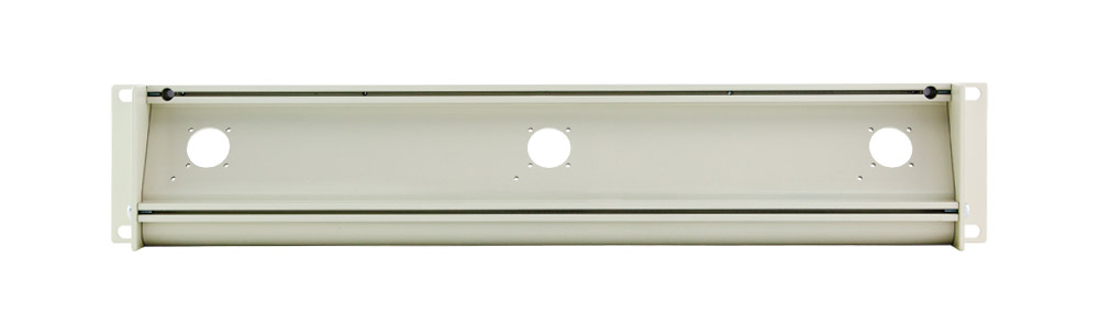 These 19 inch, rack-mounting, panels are designed to support a wide variety of fibre connectors on the tailboard of outside broadcast vehicles, in studio or stadia wall-boxes, or in 'fly away' racks or flight-cases. Angled versions, manufactured from a unique 'Z' profile aluminium-extrusion, present the connector axis at a 23.5 degree downward angle. This angle relieves strain on the cable connector termination and eases mating during rigging. Designed for Lemo 3K.93C SMPTE Hybrid fibre, Neutrik opticalCON Advanced Duo and Quad, Fibreco mini, Senko 'Universal' mount, Switchcraft EH series LC, SC and ST or any Canford 'Universal connection system' connectors.