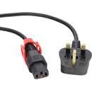 IEC-LOCK AC MAINS POWER CORDSET IEC-Lock+ C13 female - UK 13A, 3 metres, black (fused 5A)