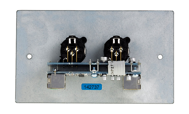This plate has the same design and functionality as XLR-M1, however it has female XLR connection and is therefore to use as an input plate.